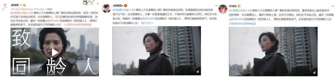 在系列話題、海報(bào)、態(tài)度短片上線前后,韓束在自媒體端收到不少關(guān)于“羨慕”的真實(shí)聲音;中國(guó)國(guó)家游泳隊(duì)隊(duì)員張雨霏、葉詩(shī)文、余依婷,南京大學(xué)商學(xué)院教授朱虹共同參與討論。今日,人民日?qǐng)?bào)客戶端也報(bào)道了這一事件,對(duì)韓束關(guān)懷女性、倡導(dǎo)積極正能量的態(tài)度主張給予高度肯定。
