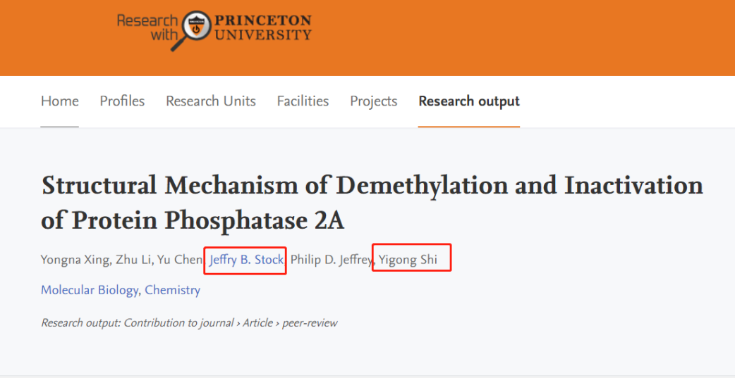 Jeffry B. Stock博士與施一公院士先前對(duì)于PP2A的研究成果