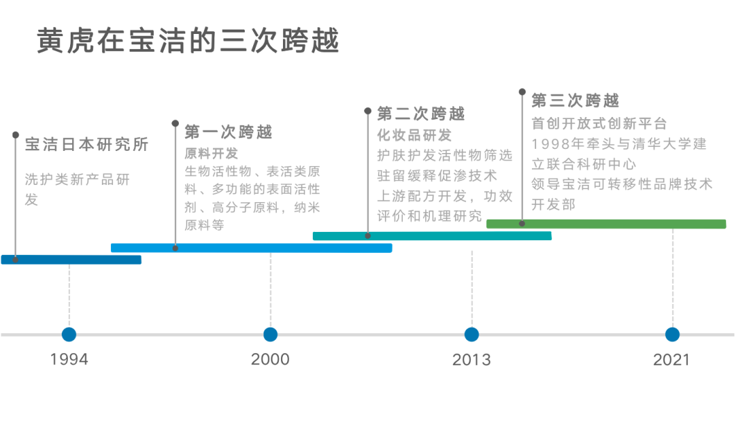 憑借過人的天賦和勤奮,黃虎在服務全球日化巨頭寶潔的20多年里,在這艘日化“航空母艦”上,連續(xù)實現(xiàn)了三次“陡峭的跨越”,讓其成為了日化研究領域少見的“高復合型”人才。
