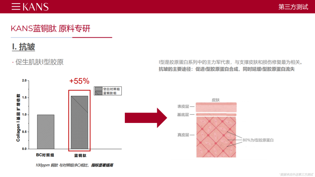 關于銅肽的卓越抗皺、舒緩等功效有非常多的文獻,今天主要分享我們韓束科研團隊對于銅肽專研的一些獨家數(shù)據(jù)。