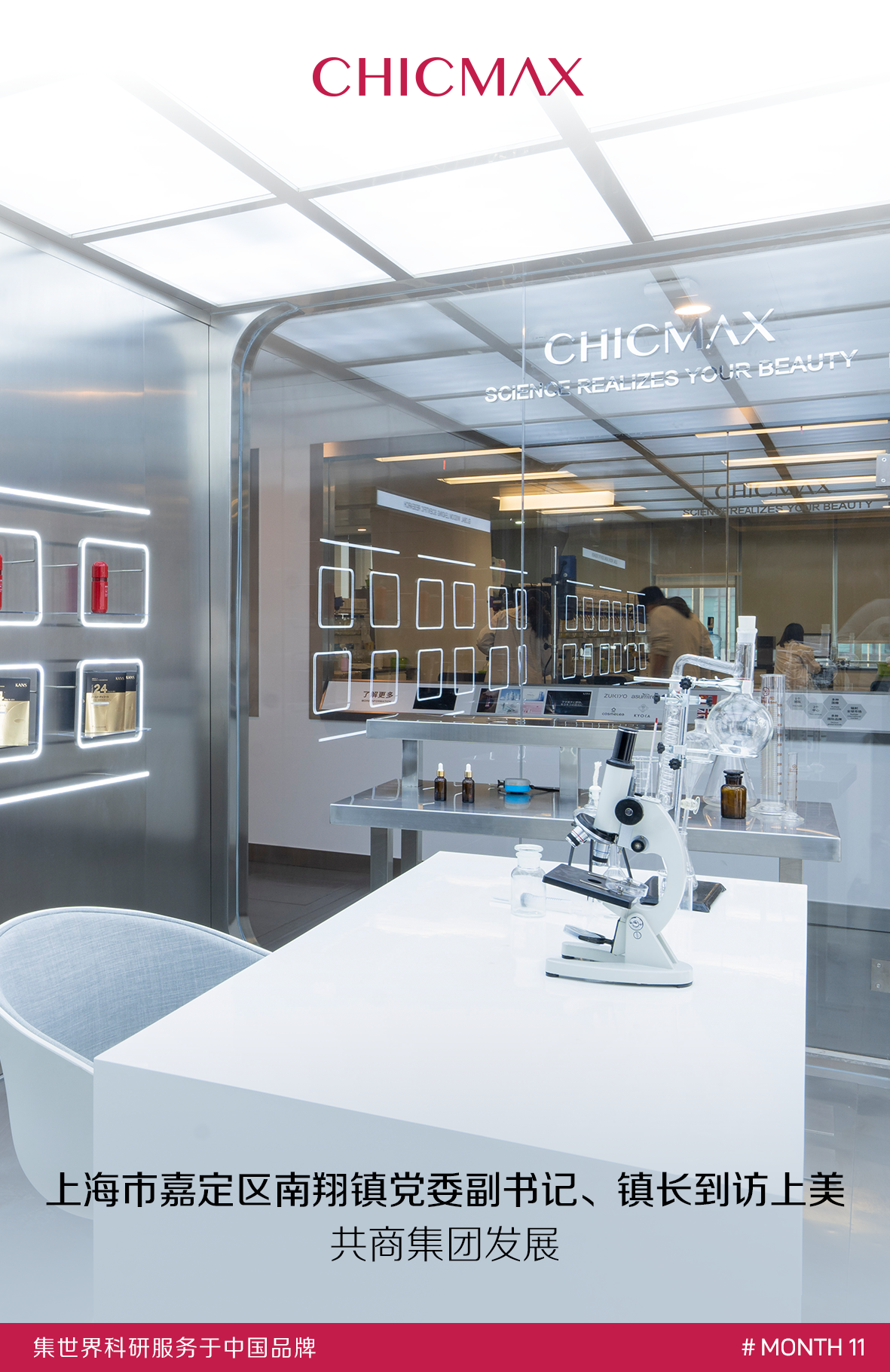 11月22日,上海市嘉定區(qū)南翔鎮(zhèn)領(lǐng)導一行到訪上美股份。南翔鎮(zhèn)黨委副書記、鎮(zhèn)長葉斌、南翔經(jīng)濟城總經(jīng)理陳劍俠一行,在上美股份副總裁俞瑛女士等人的陪同下,走進上美股份總部,詳細了解了集團的多品牌布局和科研核心優(yōu)勢,共同探討集團發(fā)展。