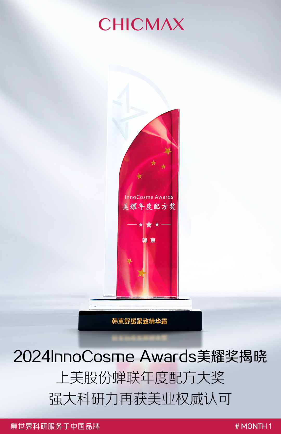 美耀獎(jiǎng)是由InnoCosme 組委打造的權(quán)威美業(yè)獎(jiǎng)項(xiàng),已連續(xù)開展四屆。該獎(jiǎng)項(xiàng)評審團(tuán)由十?dāng)?shù)位業(yè)內(nèi)權(quán)威專家和大眾評審組成,從多維度評選出來自多個(gè)賽道的優(yōu)秀產(chǎn)品,旨在鼓勵(lì)中國市場上的化妝品上下游企業(yè)不斷創(chuàng)新突破,共同推動(dòng)中國化妝品行業(yè)的進(jìn)步!