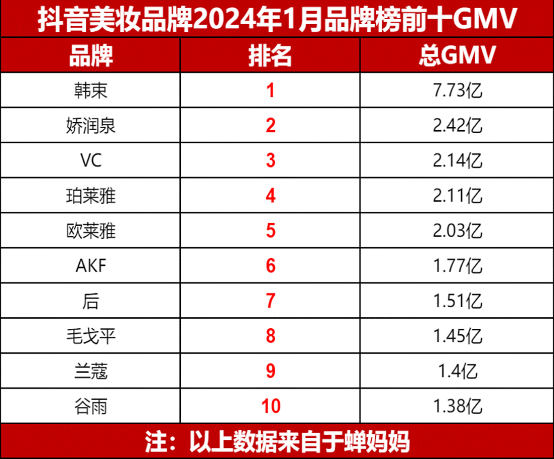 2024年1月-5月23日韓束抖音GMV榜單圖