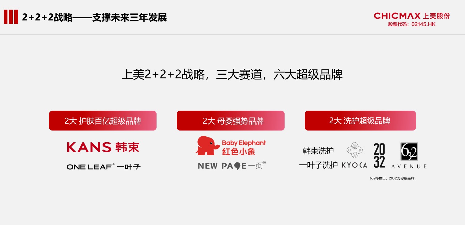 根據(jù)六六戰(zhàn)略,未來10年,上美中國區(qū)將聚焦大眾護(hù)膚、洗護(hù)個護(hù)、母嬰用品、皮膚醫(yī)療美容、彩妝、高端護(hù)膚+儀器六大板塊;根據(jù)2+2+2戰(zhàn)略,未來3年,上美將聚焦護(hù)膚、母嬰、洗護(hù)三大賽道。源源不斷的人才加入,將組建起更專業(yè)、更多元的組織戰(zhàn)隊,為上美的多品牌、多賽道發(fā)展打下堅實的基礎(chǔ)。