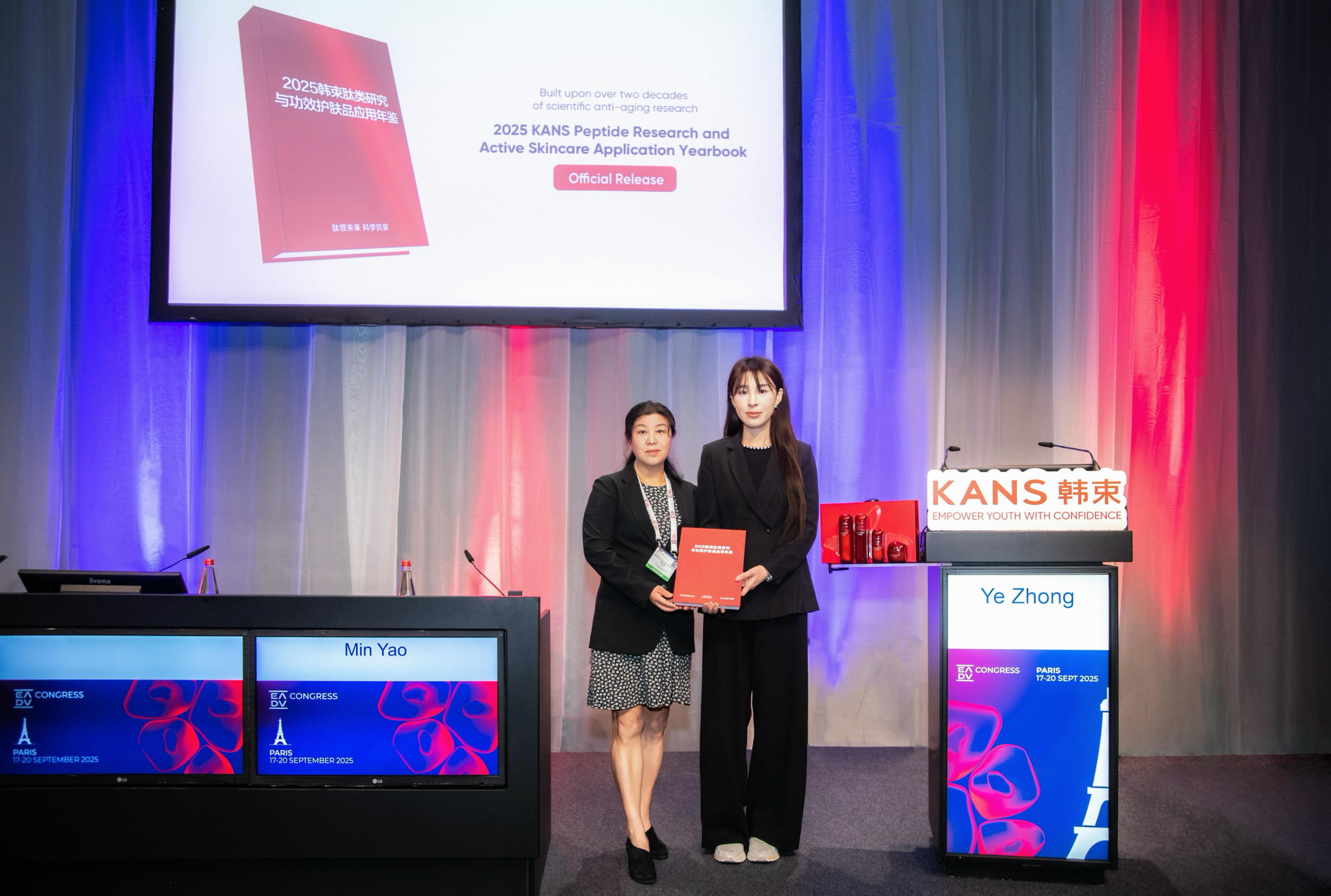 除了演講,上美股份還在本屆歐皮會上正式發(fā)布了《2025韓束肽類研究與功效護膚品應(yīng)用年鑒》,并由上美股份高級副總裁宋洋女士和韓束轉(zhuǎn)化醫(yī)學(xué)基金委員會主席姚敏教授對韓束多肽紅寶書進行了詳細介紹。