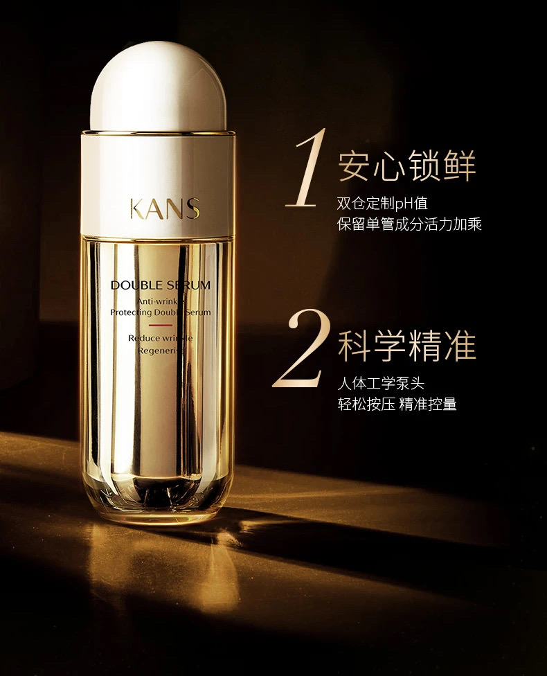 相較傳統(tǒng)精華,韓束“雙管燈精華”亮點頗多。“雙管燈精華”里的成分為專研2:1黃金配比,主打先維穩(wěn)后抗老、膚感更溫和、功效更全面。