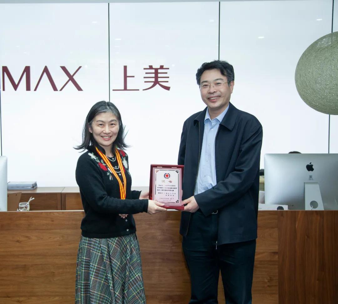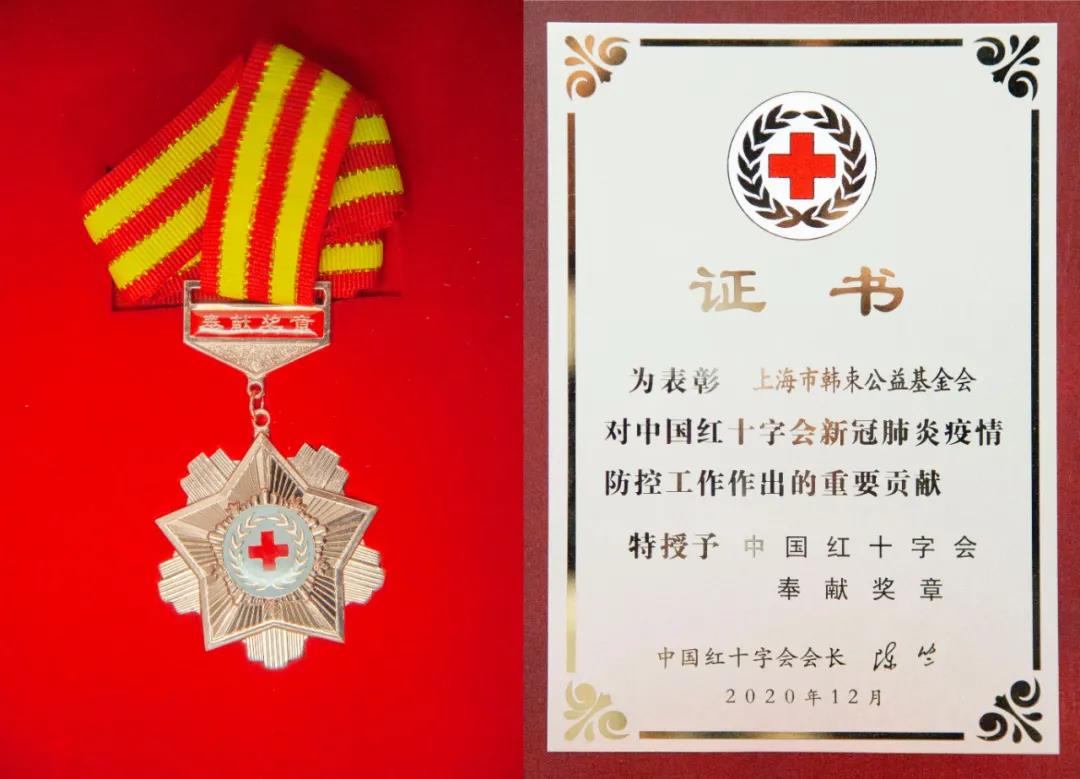今日,中國紅十字會總會籌資與財務部部長王海濤一行到訪上美集團,為上美韓束公益基金會頒發(fā)紅十字會“奉獻獎”獎章及證書,表彰其在2020年對新冠肺炎疫情防控工作中作出的貢獻。韓束公益基金會副理事長李菲作為代表接受榮譽。