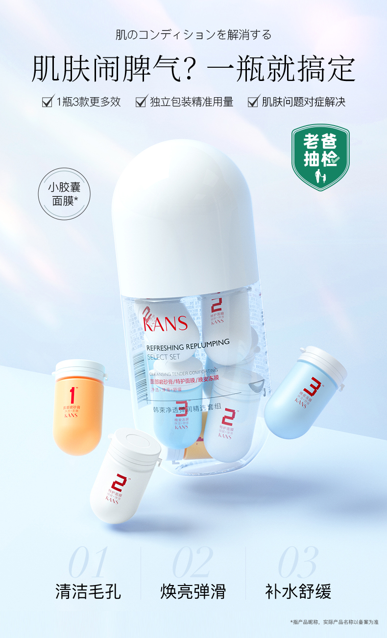 韓束情緒小膠囊面膜開發(fā)靈感源自“情緒”,正如當代年輕人面臨巨大壓力一樣,肌膚也正經(jīng)歷著各種壓力,呈現(xiàn)出“不良情緒”,例如肌膚“上火”會長痘,肌膚“沮喪”會暗沉,肌膚“焦慮”會干燥。要改善肌膚狀態(tài),就要及時釋放肌膚“壞情緒”。